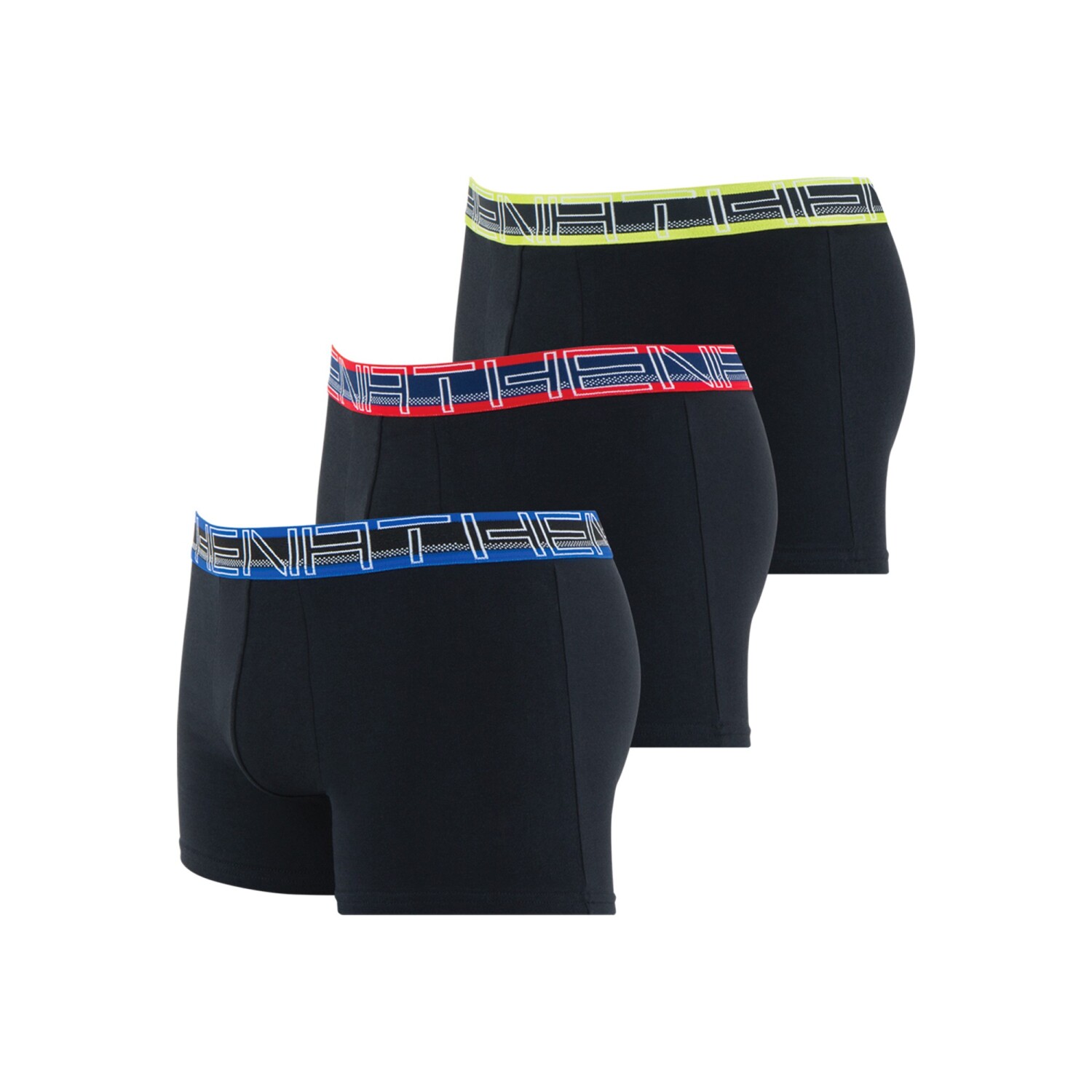 Kvalitní, měkké a příjemné boxerky Dim® ze strečové bavlny. Sada 3 boxerek Dim. Široký pružný pas s nápisem Dim®. Vpředu s podšívkou. Standard 100 podle Oeko-Tex (n° CQ 791/2). Tato známka označuje textilní výrobky, které byly podrobeny laboratorním testům na široké spektrum škodlivých látek a výrobek je bezpečný nad rámec platných norem. Lze prát v pračce.