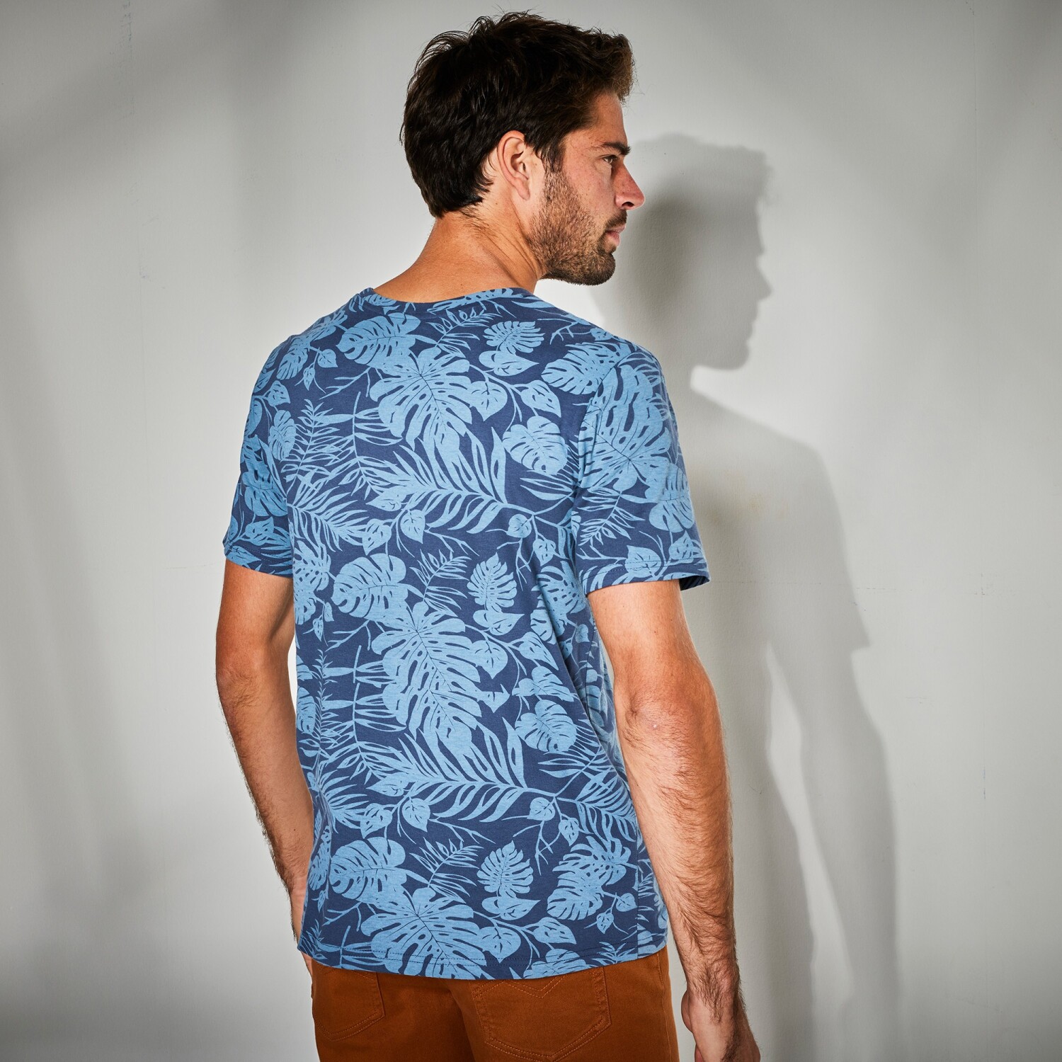 Originální úpletové tričko s krátkým rukávem a potiskem listů. Snadno se nosí s bermudami nebo chino kalhotami a bude ideálním partnerem na výlety. Kulatý výstřih. Rovný lem.