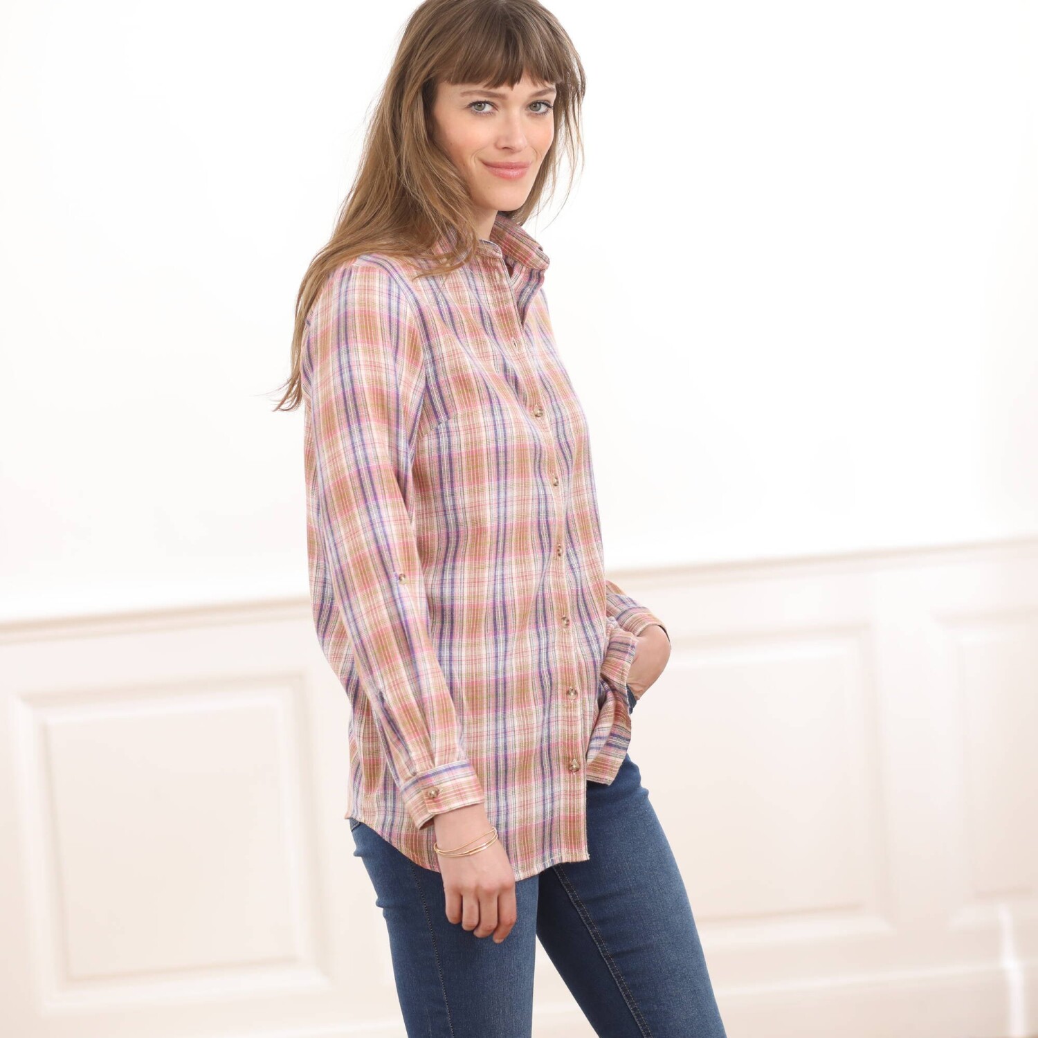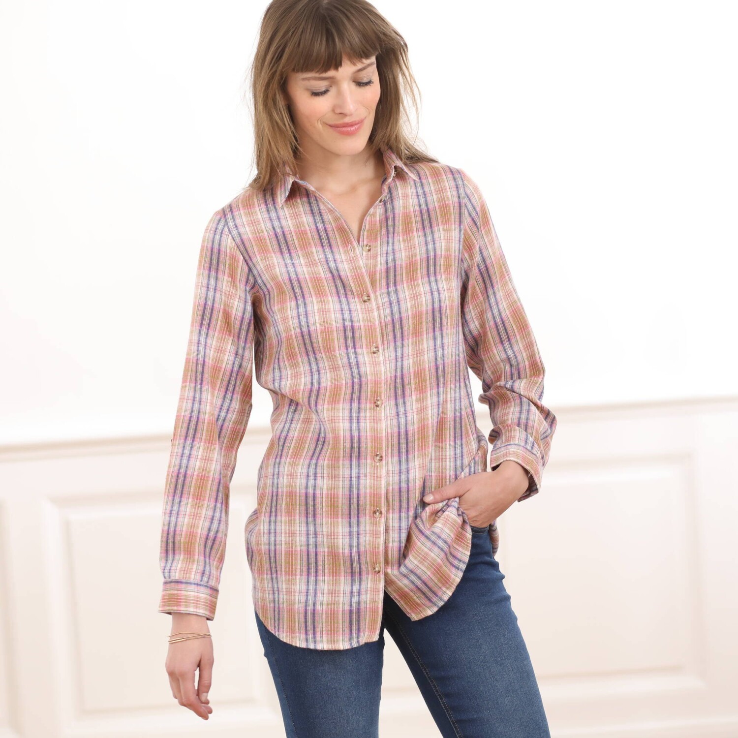 Halenka s krátkými rukávy a potiskem květin oplývá jemností a vzdušností. Rovný střih. Kulatý výstřih s průstřihem a nařasením. Vpředu uprostřed knoflíková léga. Na levé straně náprsní kapsa. Spadlé průramky. Krátké rukávy s ohrnutím. Rovný spodní lem. Lze prát v pračce.