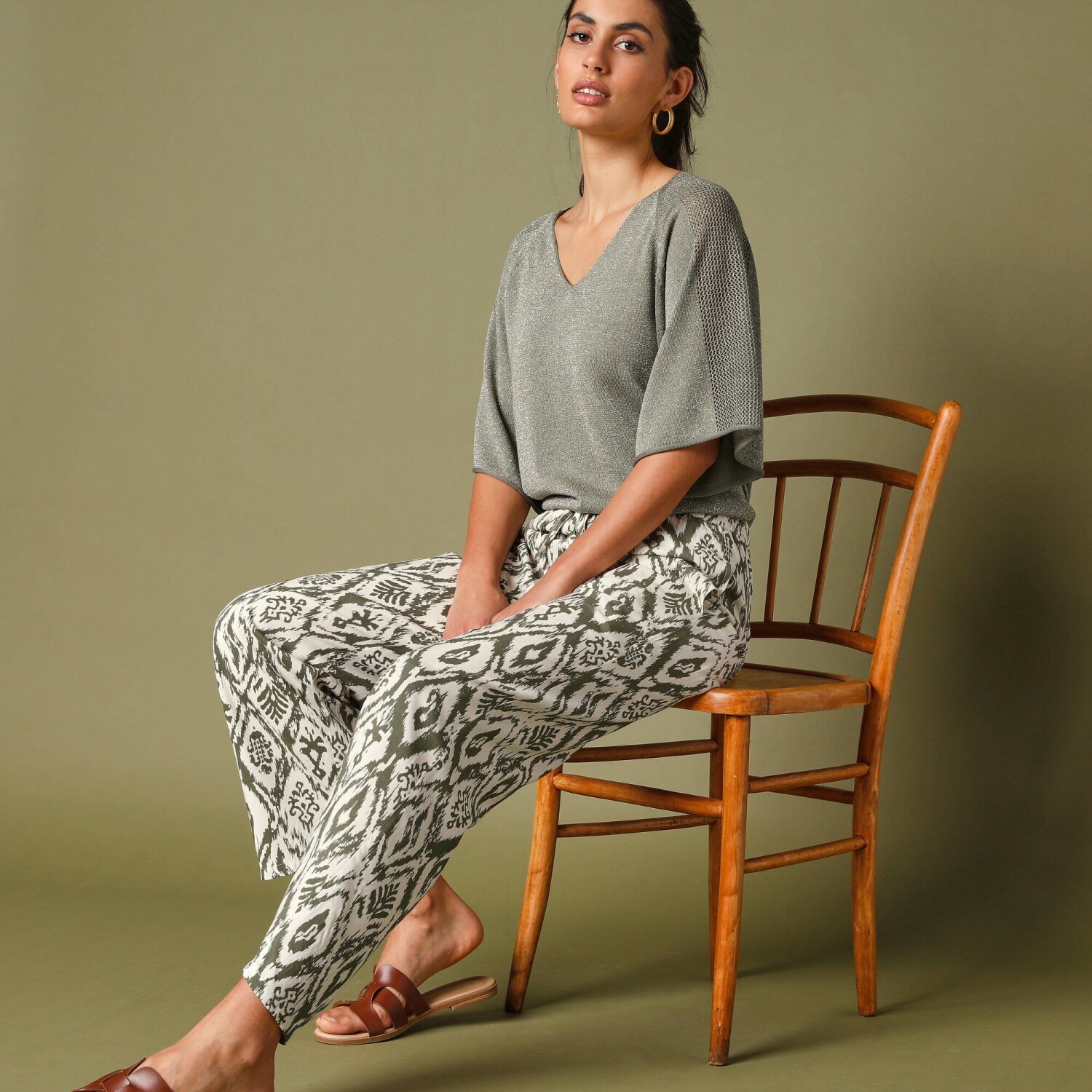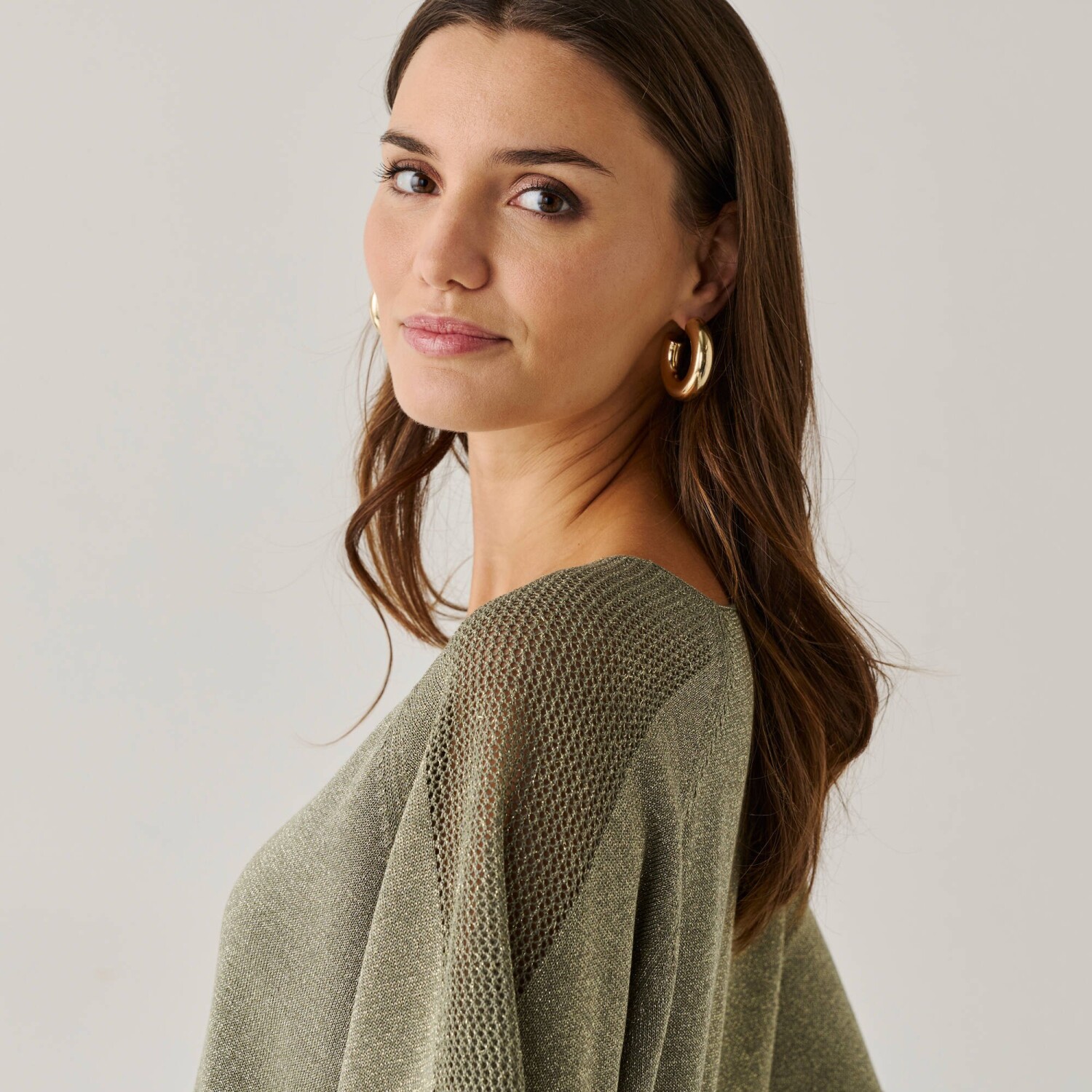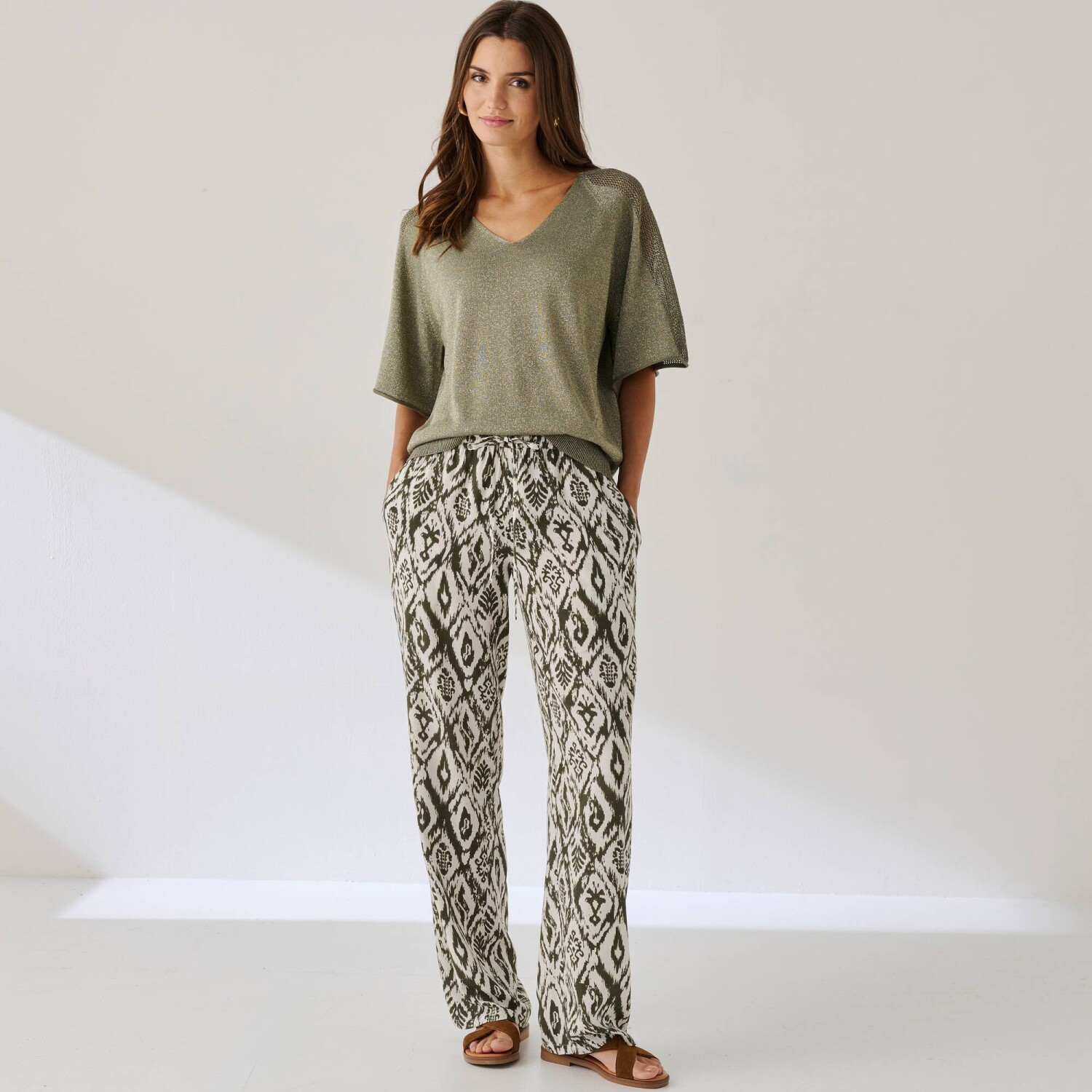 Sezónní úplet jemný na dotek, ažurové detaily a ženský look: módní pulovr si získá každé srdce. Ažurové pletené detaily na trupu a rukávech. Kulatý výstřih. Dlouhé halenkové rukávy zúžené žebrovanými manžetami. Spadlá ramena. Zúžený žebrovaný spodní lem. Lze prát v pračce.