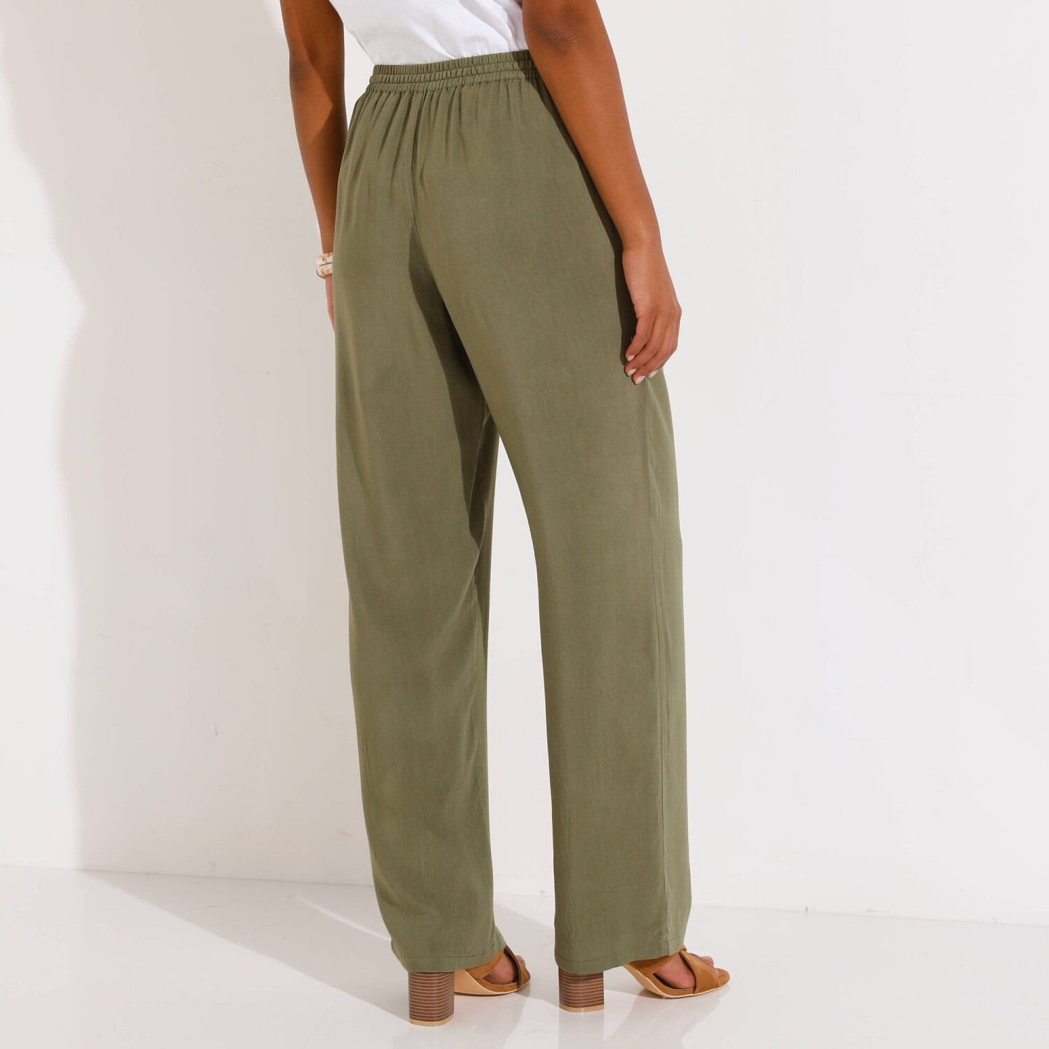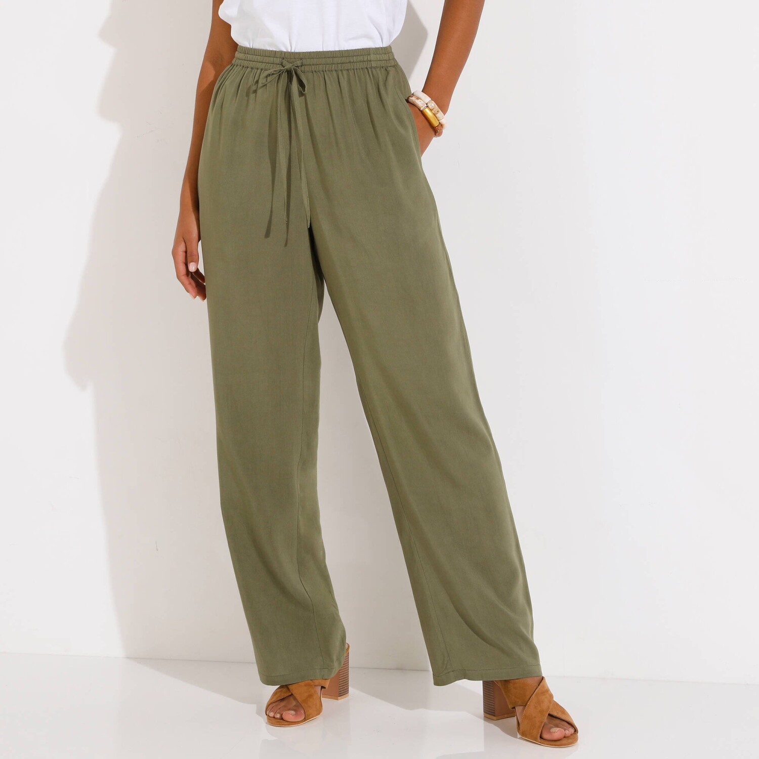 V širokém střihu a s originálním potiskem, tyto vzdušné kalhoty nemají chybu. Široký prodlužující střih. Běžná výška pasu. Vpředu plochý, vzadu pružný pas. Odnímatelný pásek ze stejné látky na zavázání a protažený poutky. 2 sklady a 2 klínové kapsy vpředu. Nohavice zakončené lemem. Potisk. Lze prát v pračce.