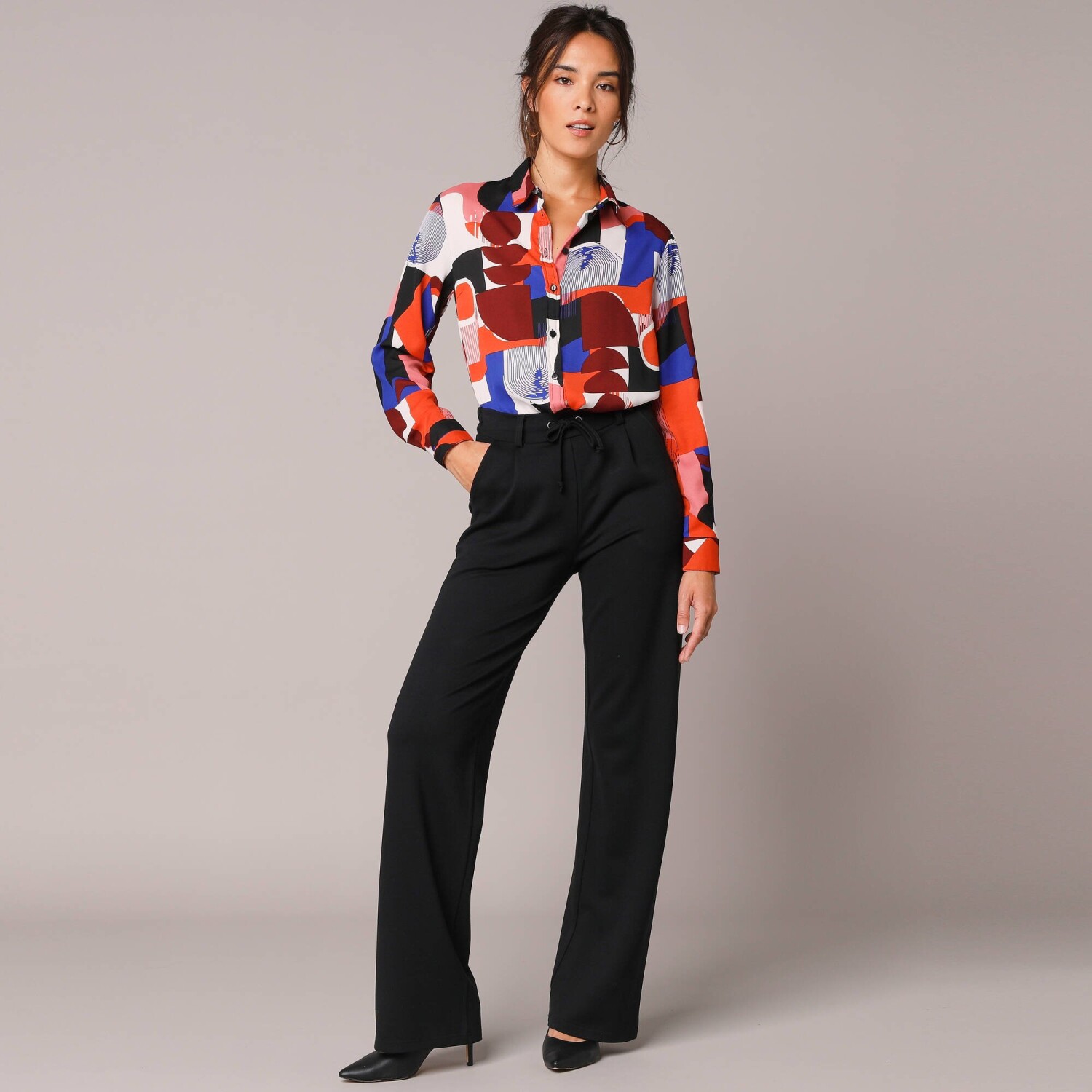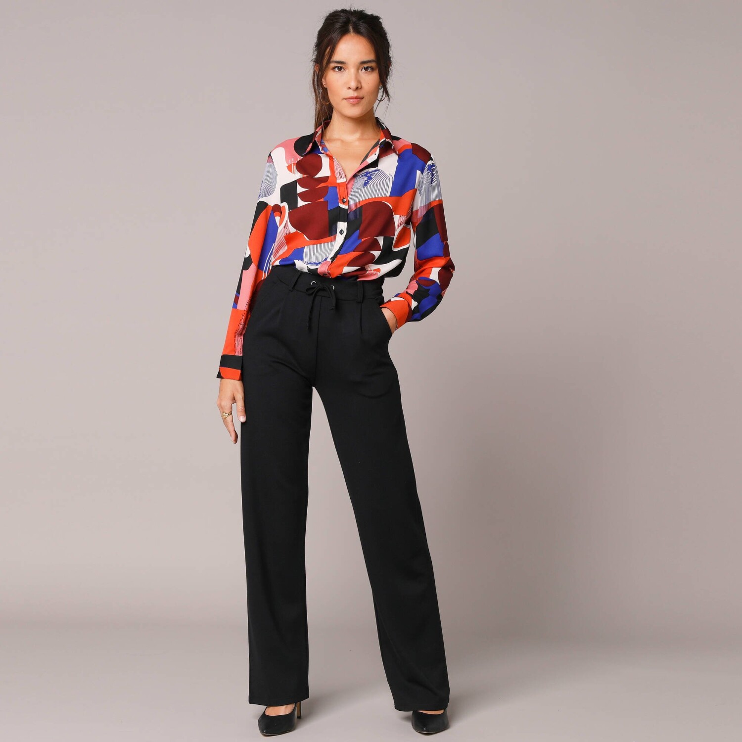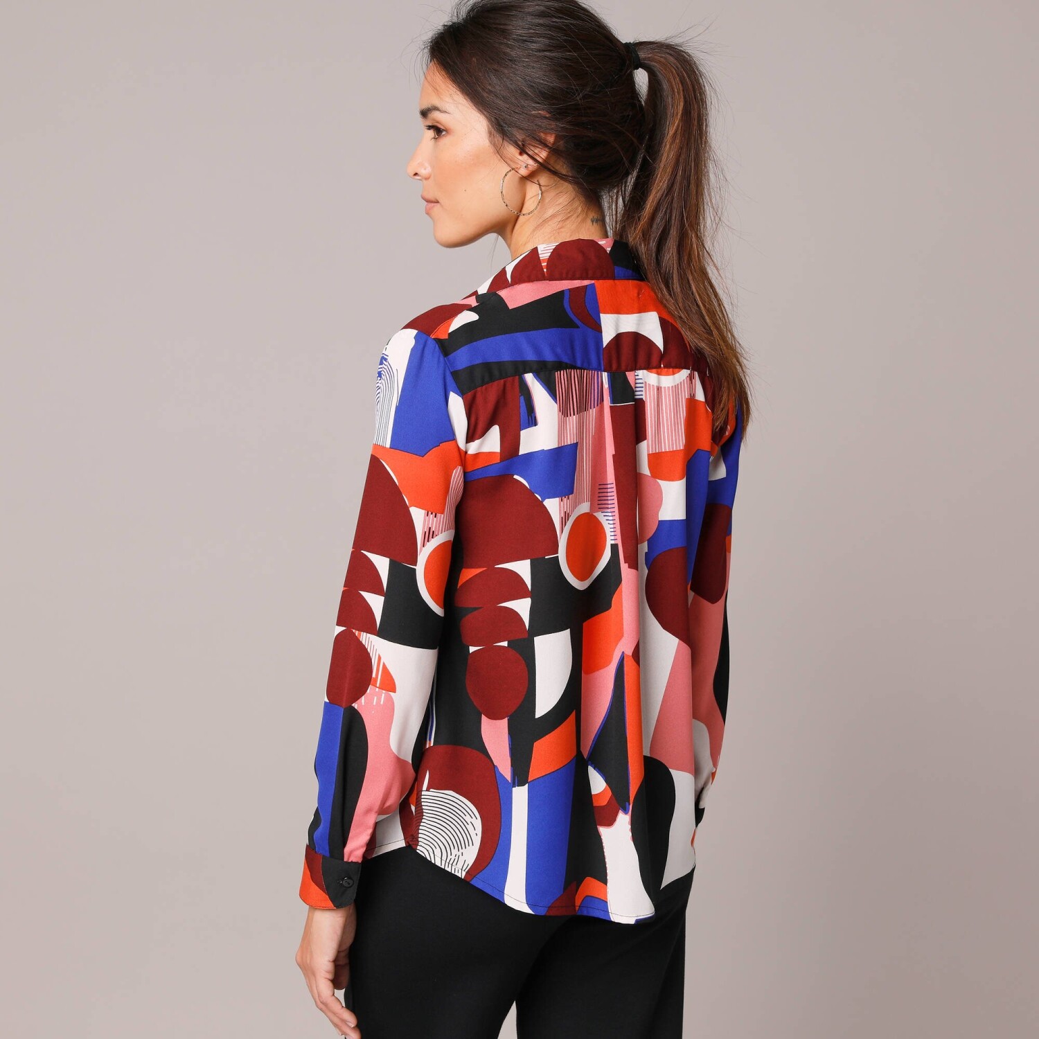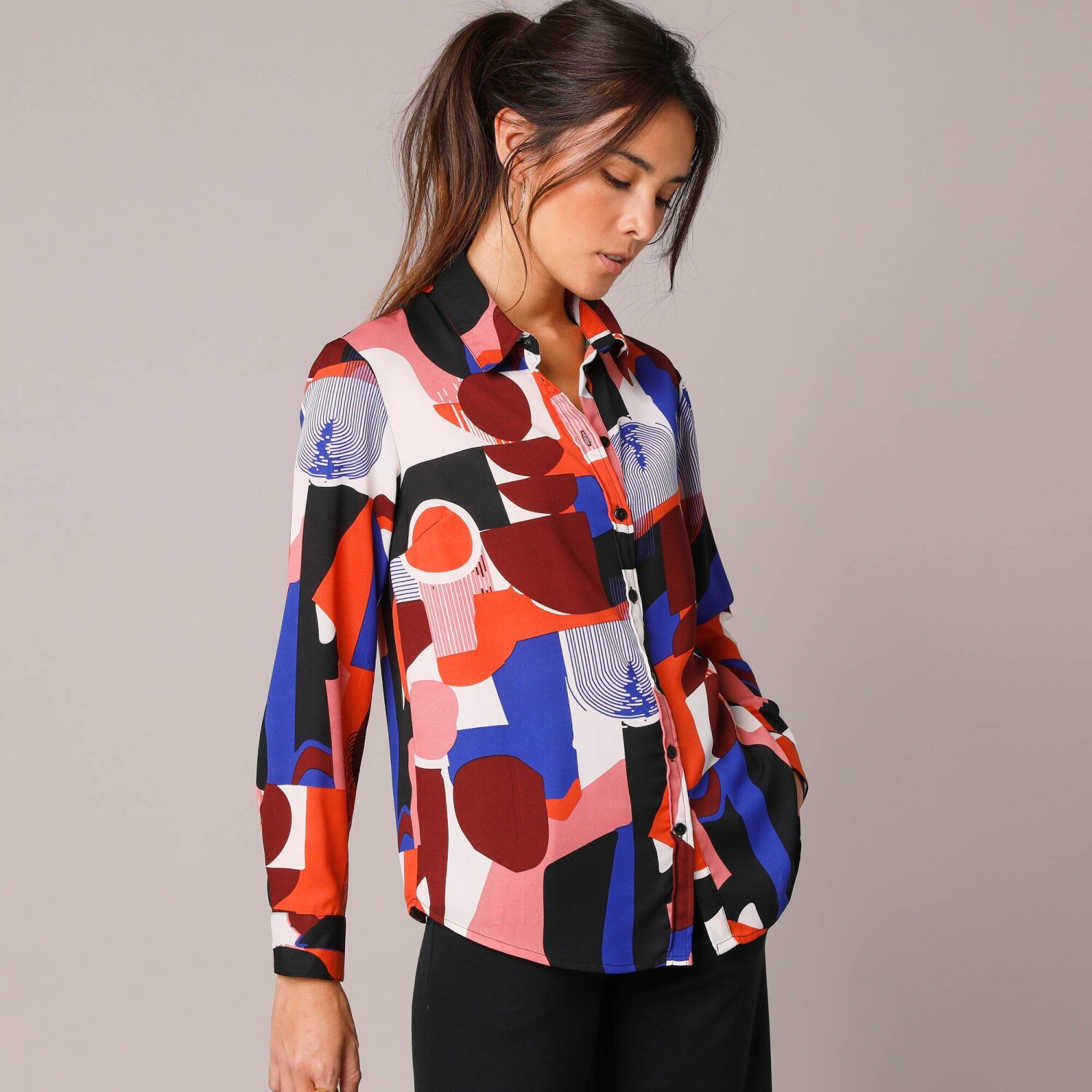 Módní halenka s potiskem květin vsází na kombinaci stylu a pohodlí. V rozšířeném lichotivém střihu vhodném pro každou postavu. Uvolněný výstřih do "V" se zlatou lemovkou a knoflíčkovým rozparkem. Dlouhé rukávy nařasené v ramenou a na manžetách. Vpředu a vzadu zakulacený spodní lem. Z ultra vzdušného krepu snadného na údržbu a příjemného na nošení. Lze prát v pračce.