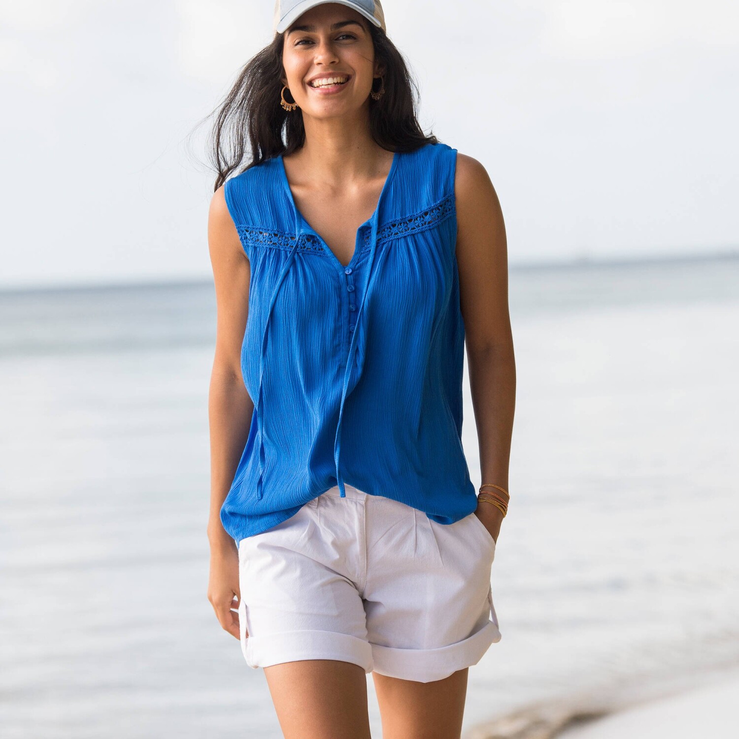 Tento top s krajkovou vsadkou perfektně doplní každý Váš model. Vpředu výstřih do "V", vzadu rovný. Krajková vsadka ve výstřihu. Úzká nastavitelná ramínka. Rovný spodní lem. Z pružného padnoucího materiálu. Lze prát v pračce.
