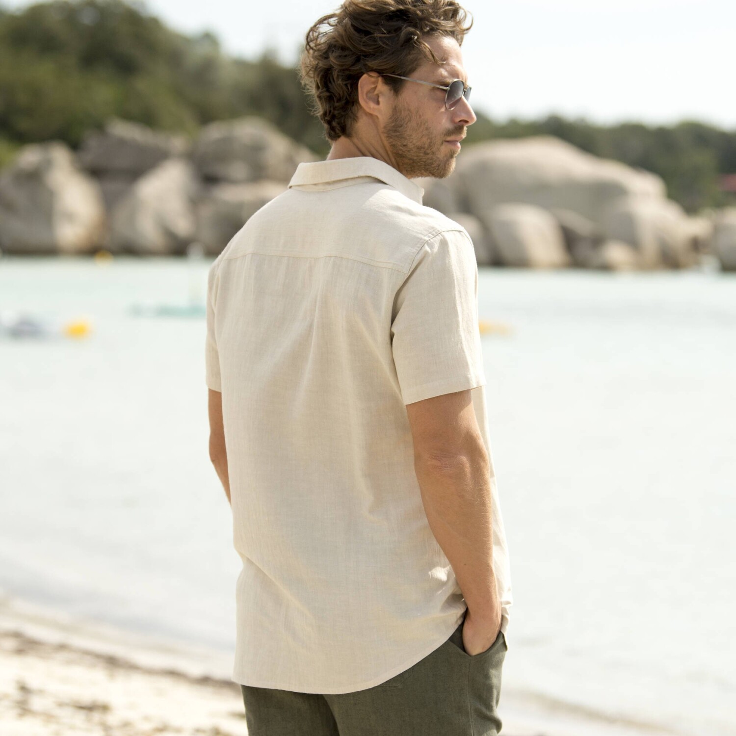 Košile s bowling límečkem představuje nadčasovou eleganci. Skvělá do každého městského šatníku. Z polybavlny s texturou. Příjemná pro nošení v letním období. Bowling límeček. Vpředu knoflíková léga. Krátké rukávy. Vzadu dvojité sedlo. Rovný spodní lem. Lze prát v pračce.
