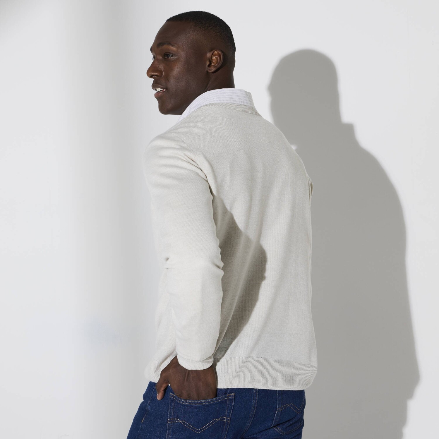 Pulovr s kulatým výstřihem patří mezi klasiku pánského šatníku! Jehněčí vlna je tak hřejivá. Kulatý výstřih. Dlouhé rukávy. Pružná zakončení. Lze prát v pračce na 30 °C na cyklus vlna.